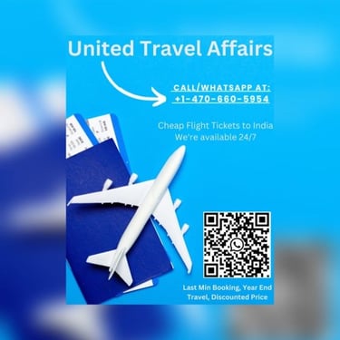 Reach out to United Travel Affairs for affordable flights from the USA to India. We're here to assist with your travel needs.
